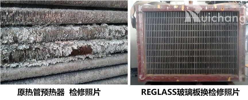 在更换玻璃板式换热器前,采用的是翅片管热管式换热器。排烟温度长期控制在110℃,效率较高,但腐蚀问题严重,每年检修时都需更换大量换热管,产生高额费用。